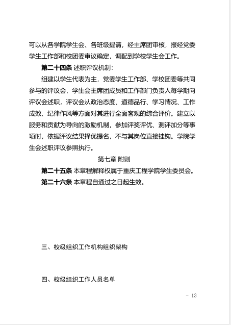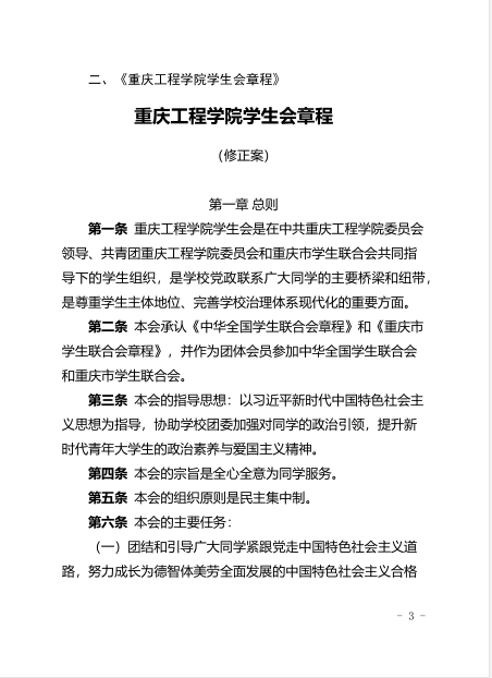 展。随后由校学生会赵仁静同学作关于《重庆工程学院学生会章程(修