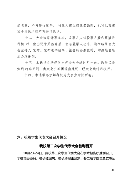 生代表大会工作报告》。在报告中,他对两年以来学生会的工作进行了