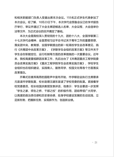院第二次学生代表大会工作汇报》《重庆工程学院第二次学生代表大会
