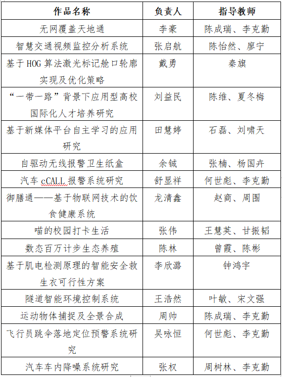 按照团市委、市教委等《关于组织参加第十七届“挑战杯”全国大学生课外学术科技作品竞赛的通知》文件精神,根据《关于开展2021年第十七届“挑战杯”全国大学生课外学术科技作品竞赛重庆工程学院选拔赛的通知》等文件要求,结合第十七届“挑战杯”重庆市赛相关安排,经专家评选,拟推荐以下15件作品入围重庆市复赛,现对结果进行公示。具体如下: