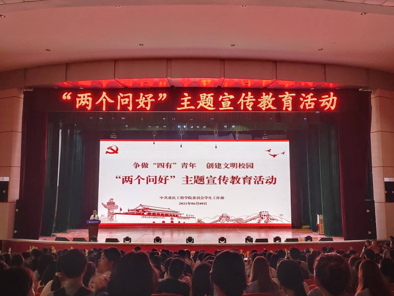 为引领广大重工青年牢固树立社会主义核心价值观,培养学生做校园文明礼貌践行者,2021年6月7日-10日,校团委在南泉校区学术报告厅成功举办“两个问好”系列主题宣传教育活动。本次活动共分为四期,覆盖全校学生党员、入党积极分子;校、院两级团委和学生会全体成员、2018、2019级全体班干部;学生助理团全体成员以及全校非毕业年级寝室长等4000余人共同参与。