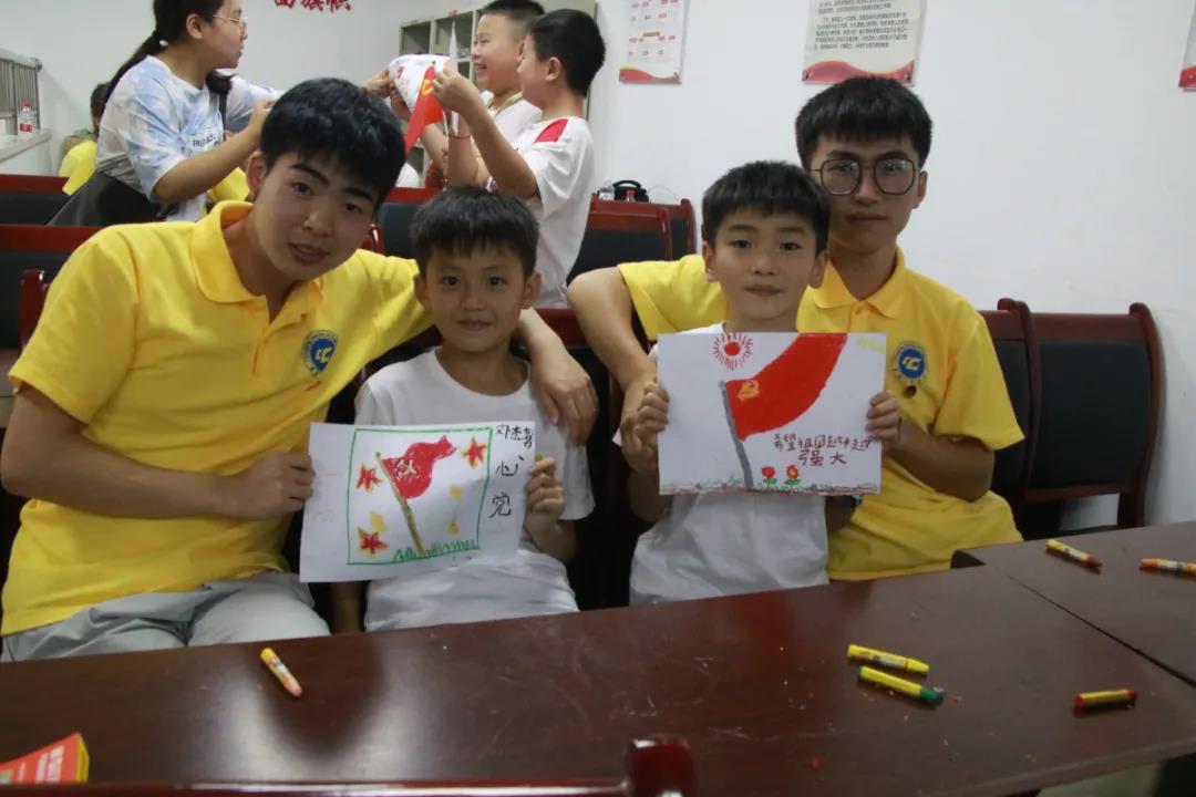 下午,校团委“三下乡”团队来到新田社区便民服务中心,为将近20名小朋友开展“学党史、强信念、跟党走”主题宣讲活动。历史是最好的“教科书”,学好党史教育从娃娃抓起,队员们通过宣讲、绘画、游戏等活动让孩子们在玩耍中学习,让他们初步了解历史,懂得珍惜现在的幸福生活,更在孩子们心中播下了爱党、爱国、爱家的种子,让孩子们进一步感受到了党的温暖、祖国的伟大,进一步增强了小朋友们的爱国热情。