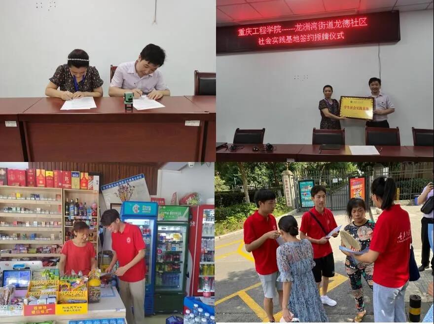 长南桥社区作为学院挂牌的社会实践基地,一直有各类活动持续开展,本次活动同学们分组进行了垃圾分类宣传、防诈骗问卷调查等实践活动,协助社区对辖区居民进行宣传引导,为了让长南桥社区居民知晓反电信诈骗和垃圾分类的重要性,保护自己的财产安全和爱护环境,让他们有所了解,达到深入基层的作用。龙德社区作为新建立的社会实践基地,团队指导老师学院分团委书记李阳同社区党支部书记梅钟利签订了共建大学生社会实践基地协议书,并为社区授牌;进行完授牌仪式后,我们开展了相关计划任务安排,我们的同学们也积极参与到巴南区共建文明城市,宣传文明五要五不要的活动中,尽管顶着烈日炎炎,但是同学们却丝毫没有抱怨与退缩,大家也都带着更高的热情在沿街商铺进行挨家的宣传,并且进行了相关的知识科普,实现了龙德社区商铺宣传的全覆盖。社区居民们也很配合我们工作,积极听取我们的宣传并表示自己会做到这几点,争创文明城市。