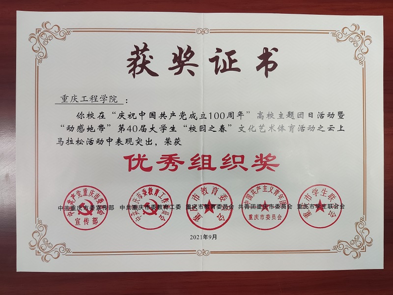 重庆工程学院在”庆祝中国共产党成立100周年“高校主题团日活动暨”动感地带“第40届大学生”校园之春“文化艺术节体育活动之云上马拉松活动中荣获优秀组织奖