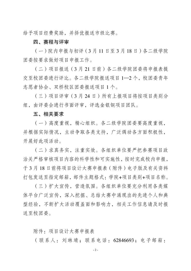 共青团重庆工程学院委员会 关于举办2022年“春满校园”大学生志愿服务项 目设计大赛的通知
