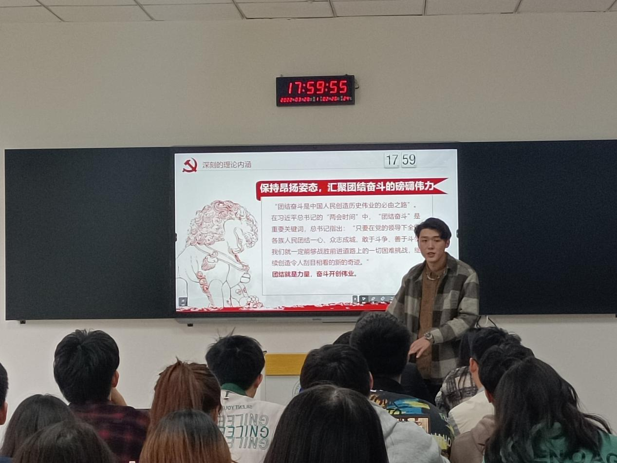 会上,卢治帆首先带领全体成员了解了习总书记2022年全国两会重要讲话的主要内容,总结了这次重要讲话的精神。而后向全体成员分享本次主题会议的三大核心和五个必由之路。其中思想指引,理论内涵,落实全员这三大核心能引导同学们积极思考两会精神,不断树立坚定的理想信念,培养自强自立的的精神力量,团结一致,奋斗迈向新未来。