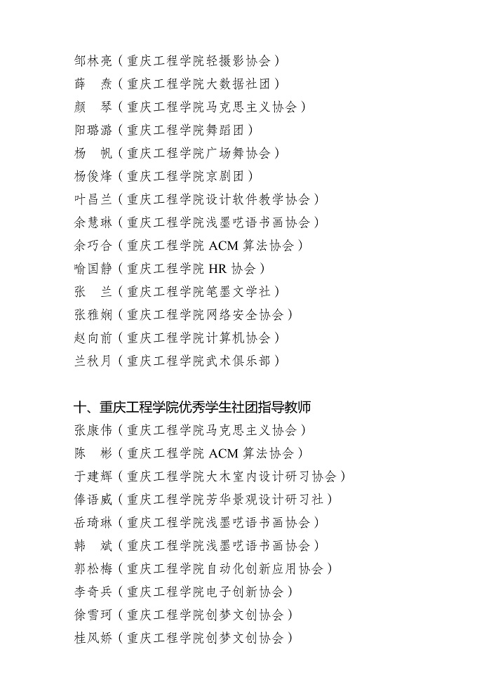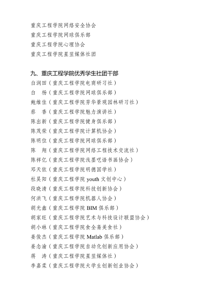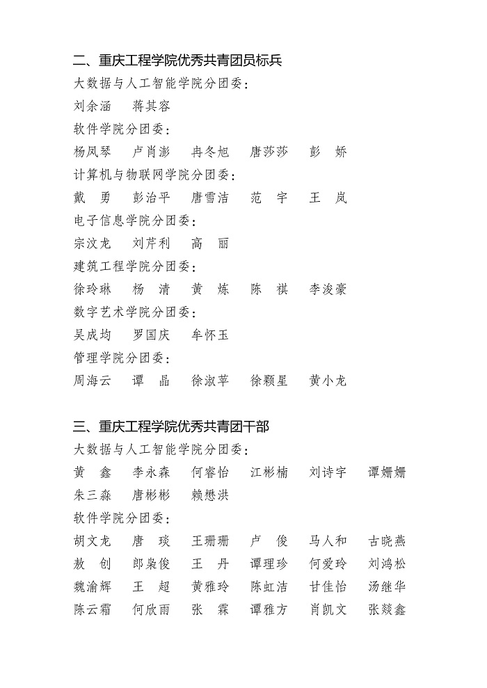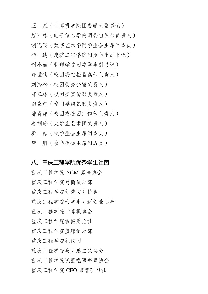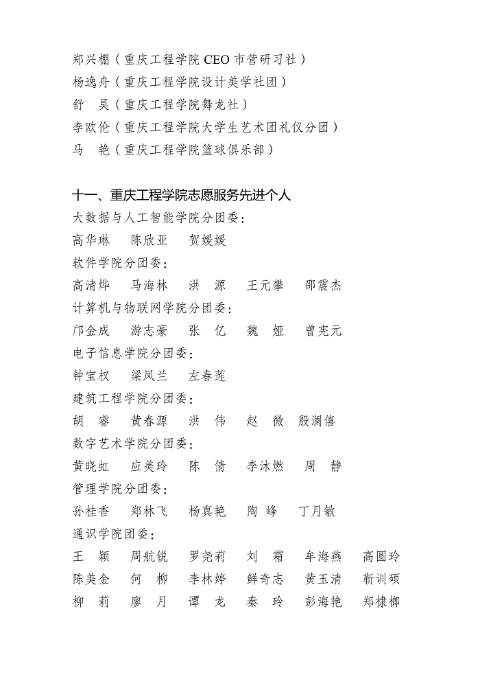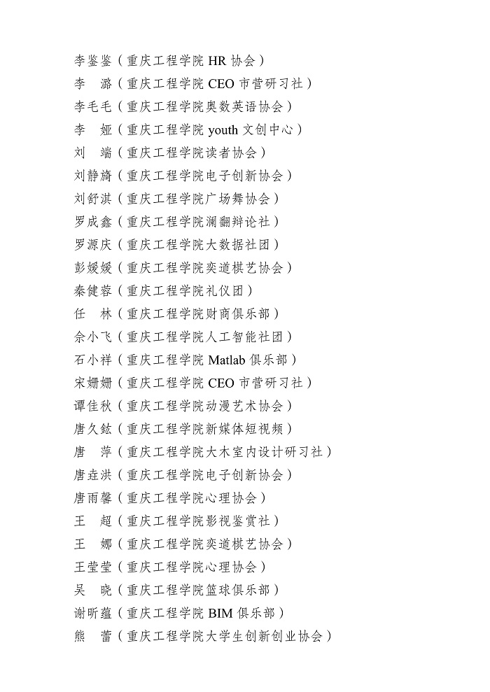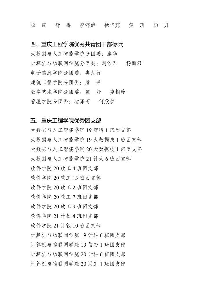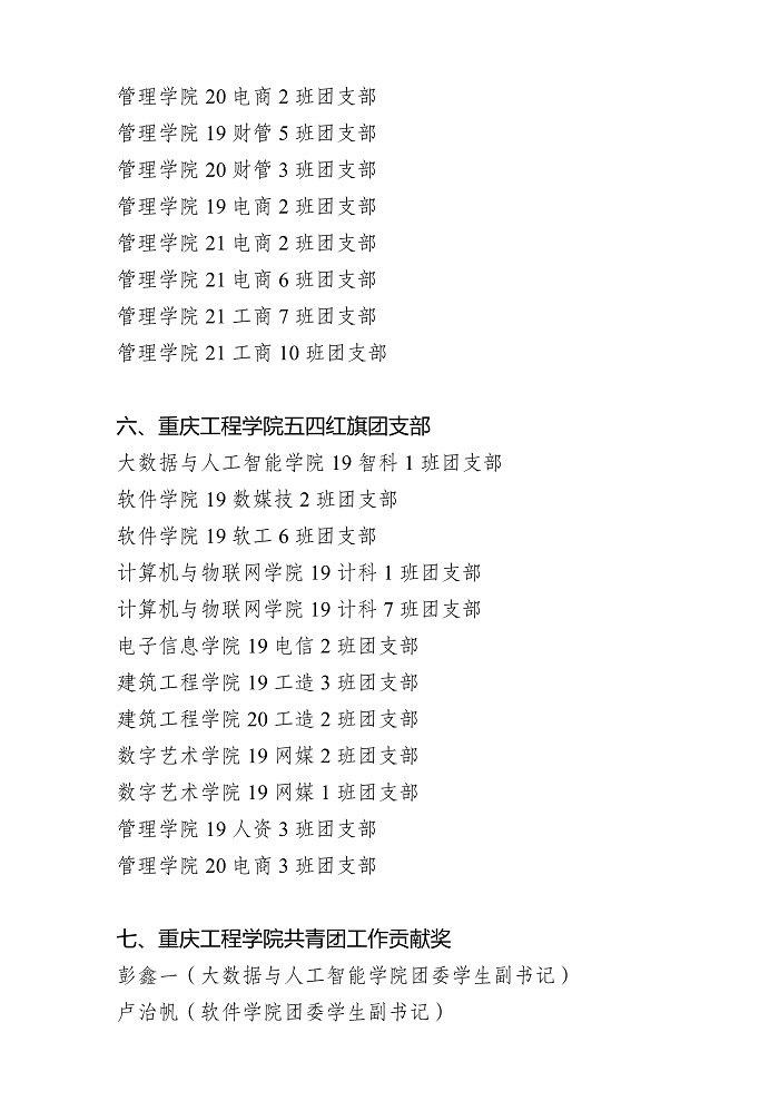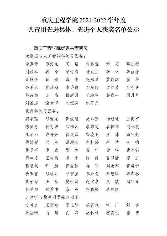 关于重庆工程学院 2021-2022 学年 共青团先进集体、先进个人获奖名单的公示