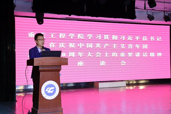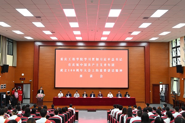本网讯(文/图 校团委 金质纯)为深入学习贯彻习近平总书记在庆祝中国共产主义青年团成立100周年大会上的重要讲话精神,5月18-19日,学校在第七教学楼报告厅、双桥校区报告厅举行重庆工程学院学习贯彻习近平总书记在庆祝中国共产主义青年团成立100周年大会上的重要讲话精神座谈会。党委书记谭明术、党委副书记兼常务副校长张业平、党委副书记唐小勇、副校长王建东出席会议,各二级学院党总支书记、分团委书记以及团员青年代表等参加会议。