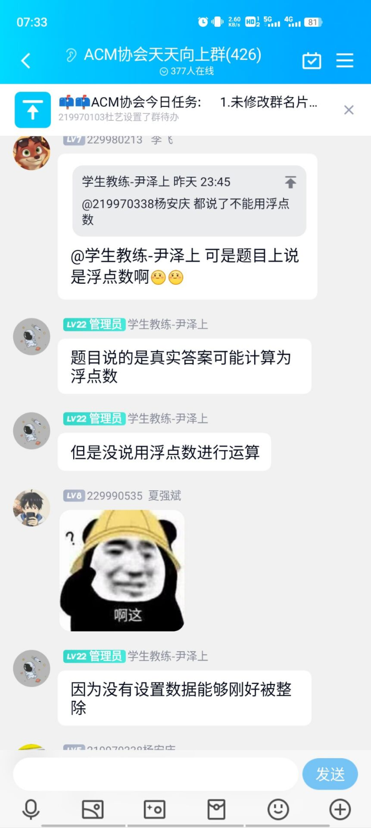 本次活动中,协会会员们积极参与答题,敢于质疑问难,而ACM协会教练部的学生教练也在协会群组中持续答疑,一一解答各学生的问题,激励学生持续学习,挑战自我。本次活动涉及原创题共15题,总共提交代码数6668次,日均提交代码数为833次,其中,女生总提交代码数为1504次,ACM协会在为大家提供实践平台和解疑答惑的同时也希望能有更多学生了解编程和一些相关竞赛,能使用计算机解决实际问题,为后面参与高层次竞赛夯实基础,创下辉煌。