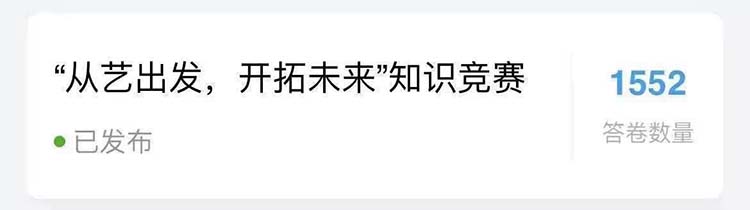 重庆工程学院艺术与科技设计联盟协会于2023年3月6日—3月10日开展了”从艺出发,开拓未来”知识竞赛活动。 本次活动对象为重庆工程学院全体同学,共计1465人参加。活动主要为了激发同学们的学习热情,增加对艺术知识的了解,培养学生将艺术与历史联系思考的能力。 通过本次活动是希望促进同学们对艺术知识的了解和开拓更广的知识面,同时也丰富同学们的课余时间。