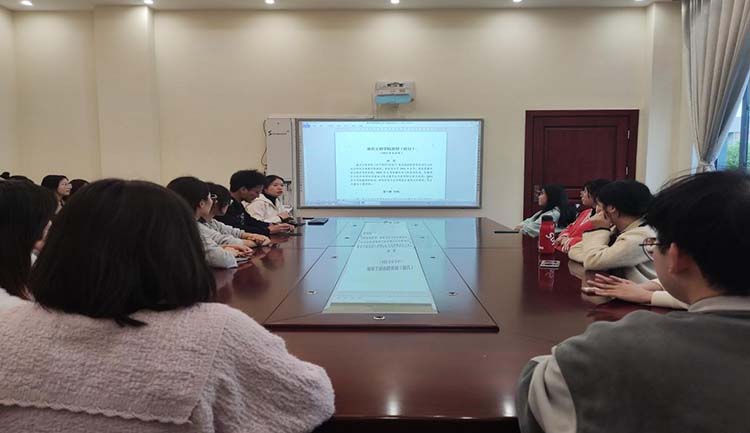 会议第一项,由社团指导老师黄璐老师带领大家一同了解学习《重庆工程学院章程(修订)》,包括学校概况、教学特色、人才培养模式、学校组织架构、教育教学方面、学生权益和义务等内容。其中,黄璐老师重点介绍了学校特色、应用型人才培养方案和“四化、三库、两基地、一平台”等部分,让大家对学校的各个方面有了更深刻的认识。