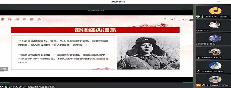 2023年3月22日19:00,ACM协会举办了一场以雷锋为主题的红色活动,通过在线上的形式,同时与双桥社员连线,向全体协会成员宣讲雷锋同志的先进事迹和崇高精神,激励社员们树立正确的价值观和道德观。本次活动共计人次150余人。