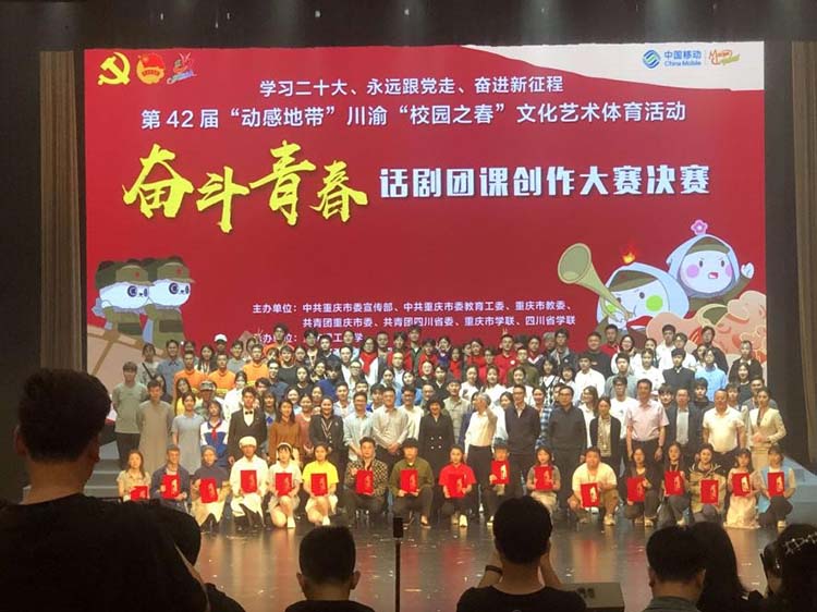 本网讯(文/图 校团委 张俊)近日,在第42届川渝“校园之春”文化艺术体育活动“奋斗青春”话剧团课创作大赛中,重工师生再创佳绩,斩获全市三等奖!该比赛由中共重庆市委宣传部、中共重庆市委教育工委、重庆市教委、共青团重庆市委、共青团四川省委、重庆市学联、四川省学联主办等7家单位联合主办。