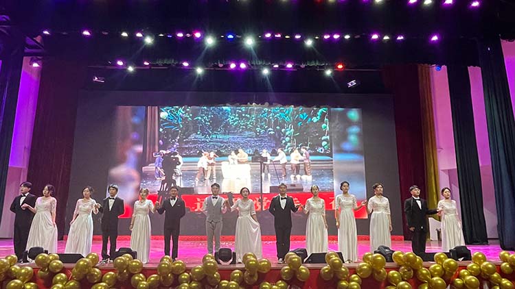 活动在团歌《光荣啊,中国共青团》中拉开序幕,团学党支部易云丽领学党的二十大精神。在活动进行中,团学党支部黄涛、易云丽等同志为2022—2023学年“优秀社团”获奖单位进行颁奖,青年志愿者协会党支部带来手语操表演,青年宣讲团团支部成员带来朗诵《赵一曼》,社团团支部通过小合唱、舞蹈、情景表演等多形式引导学生党员、团员青年深刻领会党的二十大精神的丰富内涵,有效提升其政治素养和思想觉悟,把思想和行动统一到党的二十大精神上来,带领学生党员、团员青年踔厉奋发、勇毅前行,让青春在全面建设社会主义现代化国家的火热实践中绽放绚丽之花。