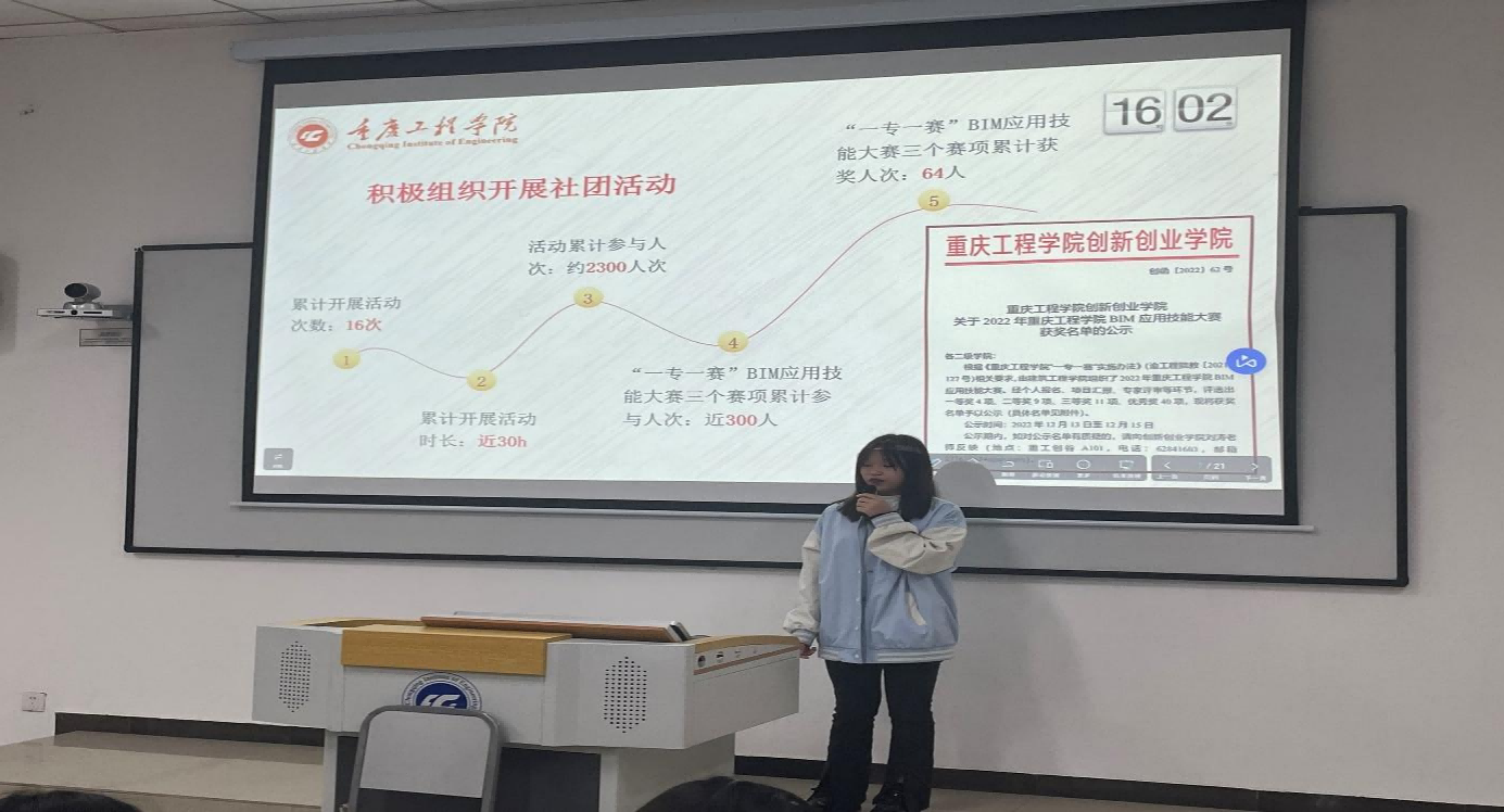 2023年10月23日,为进一步加快俱乐部新成员迅速认识到重庆工程学院BIM俱乐部,同时也是认识俱乐部内优秀学长学姐们。体验到BIM俱乐部的文化,认识到建筑信息建模竞赛,认识到优秀的学长学姐。重庆工程学院BIM俱乐部联合俱乐部成员联合推动俱乐部的前进方向,以及给予前进力量,共同携手开展“BIM俱乐部全员大会”(参会人员共计256人)。