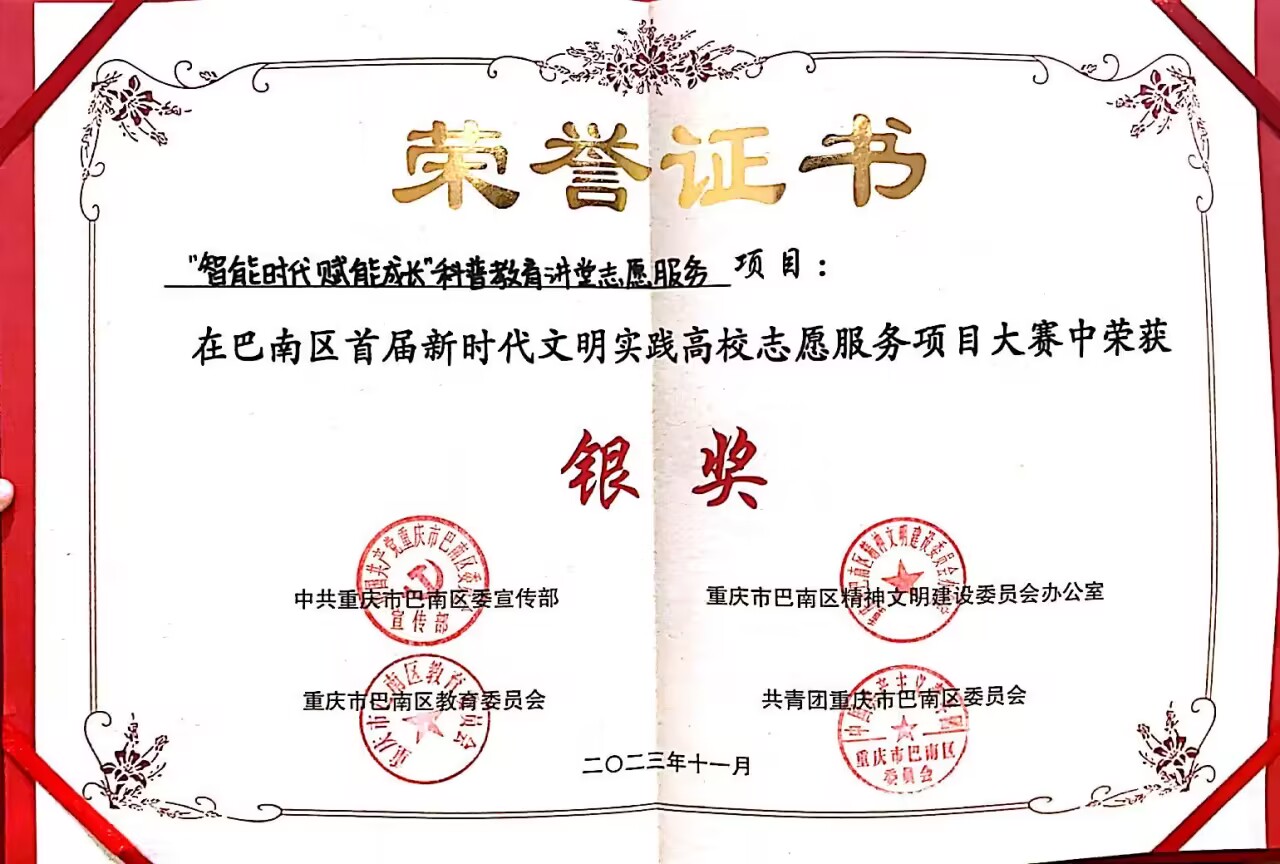我校在巴南区首届新时代文明实践高校志愿服务项目大赛中荣获银奖