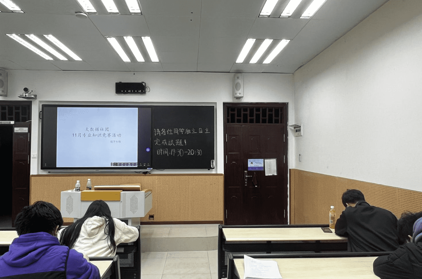 为了让同学们了解对自身学习专业知识的掌握情况,促进同学们后面对专业知识的学习,更早地弥补自身的不足,更加深入地对专业知识进行解读。营造浓厚的学习氛围,提升自身学习的能力,加强学校的知识文明建设,学风建设。为此大数据社团在2023年11月3日开展专业知识竞赛,线上答题活动 共计70人参与,2023年11月20日线下答题共计18人参与。