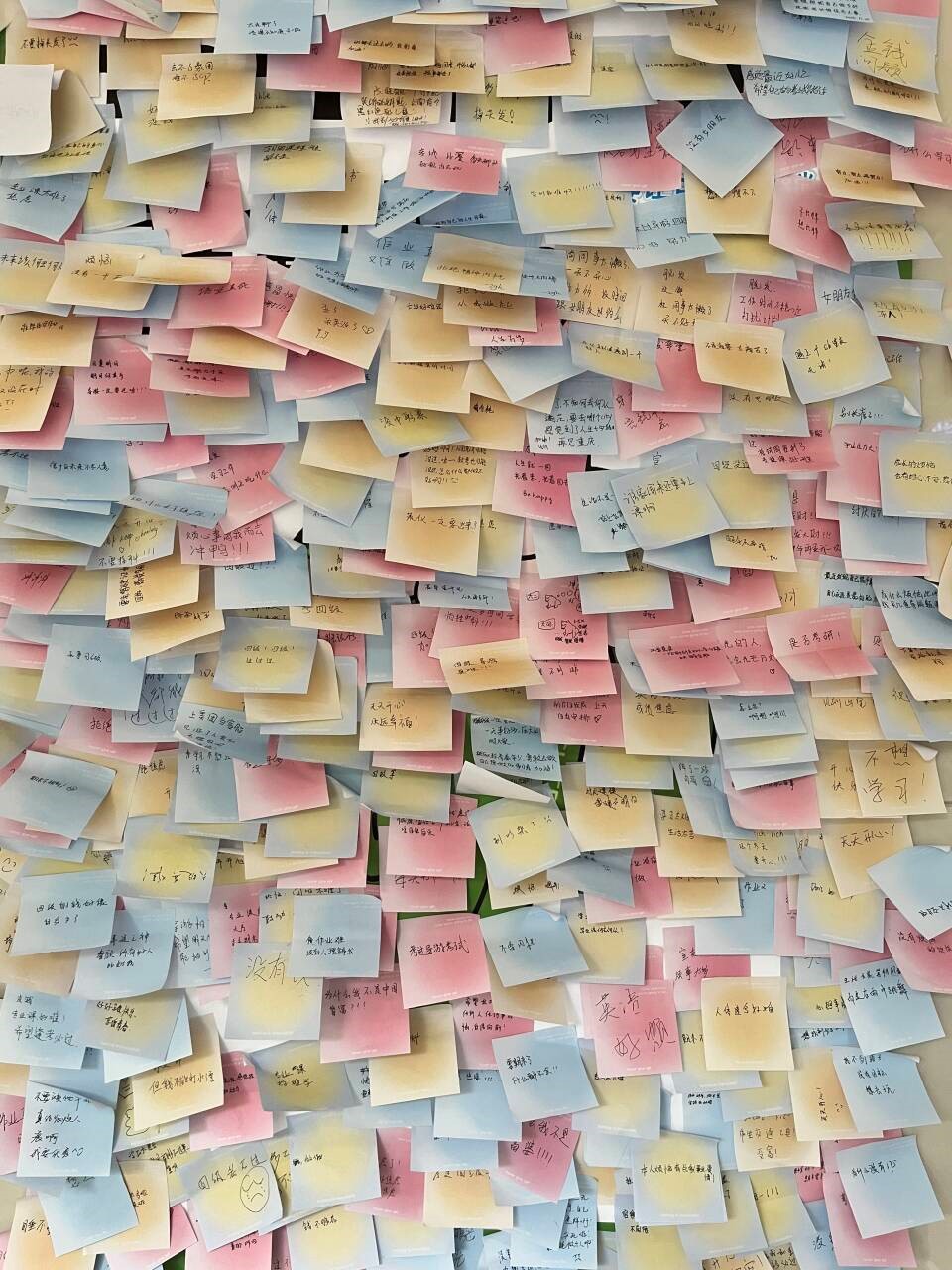 此次活动通过无形的宣泄和鼓劲帮助同学们走出情绪内耗怪圈,引导同学们积极正确的应对压力与负面情绪,化焦虑为动力。阳光温暖的话语随着纸盒轻轻翻动,再被同学们重新拿出传递到不同人手中。他们将深藏已久的情绪诉诸笔尖并大方的展示。同学们将暖心的安慰互相传递,在别人的鼓励中学会爱自己、爱他人,在便签上写下真挚的话语。笔纸间书写着对他人的祝福,字里行间的祝福传递着温暖和力量。