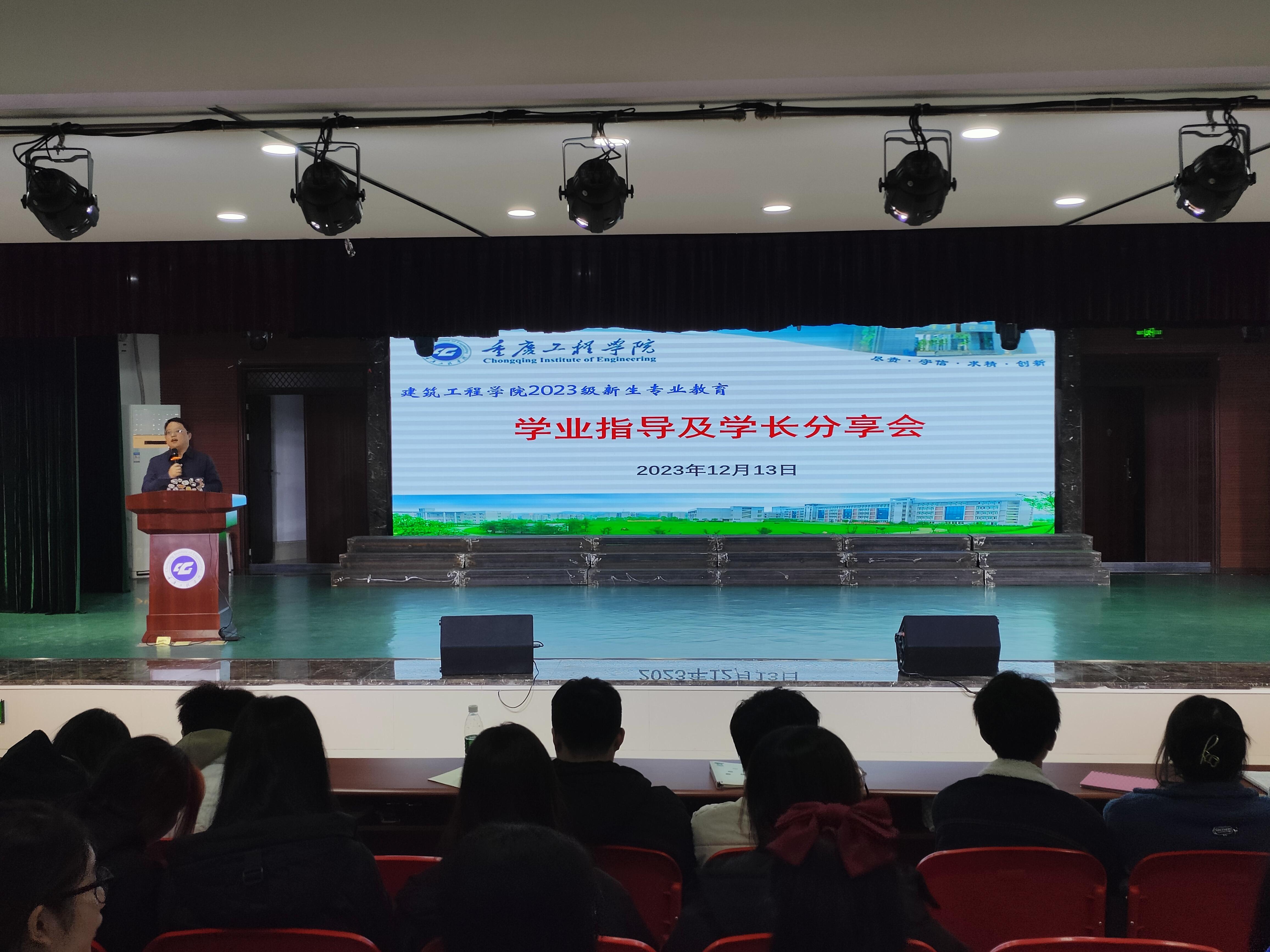 本网讯(文/廖梓丞 图/建筑工程学院团委宣传部)为帮助建筑工程学院大一新生更好地适应大学生活,规划未来发展。建筑工程学院团委、学生会于12月13日18:00-19:00在双桥校区报告厅举办2023级新生专业教育学业指导及学长学姐分享会。建筑工程学院副院长汪金能、组织员吴俊峰老师、20级土木学长李鹏翔、20级工造学长张建、20级环设学姐龙淅、21级学姐李燕以及建筑工程学院大一全体同学参与此次会议。
