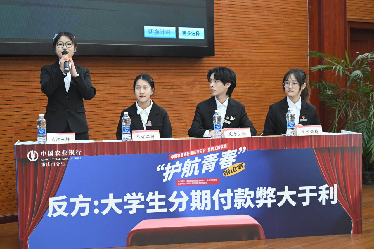 (本网讯 文 张俊)为落实3·15金融消费者权益保护教育宣传活动要求,切实增强广大师生的金融素养,提升风险识别和防范能力,合力打造平安校园 。3月11日至3月14日,我校联合中国农业银行重庆巴南支行开展了“护航青春”大学生消费者权益保护主题系列辩论赛,经过层层淘汰,3月14日下午“护航青春”辩论赛总决赛于我校7807精彩上演,经过精彩纷呈的辩论,建筑工程学院辩论队凭借其扎实的专业知识、出色的辩论技巧和团队协作,最终荣获冠军,计算机与物联网学院辩论队荣获亚军,新媒体电商学院辩论队荣获季军。国家金融监督管理总局巴南监管分局统计信息与风险监测科科长张曙光、中国农业银行重庆分行安全保卫部副总经理熊伟、中国农业银行重庆巴南支行党委书记李杰、学校财务总监王小林出席决赛现场,此外,中国农业银行重庆分行相关部门负责人、重庆工程学院校、院团委教师代表,团员青年代表、学生助理团队代表共300余人参与活动。