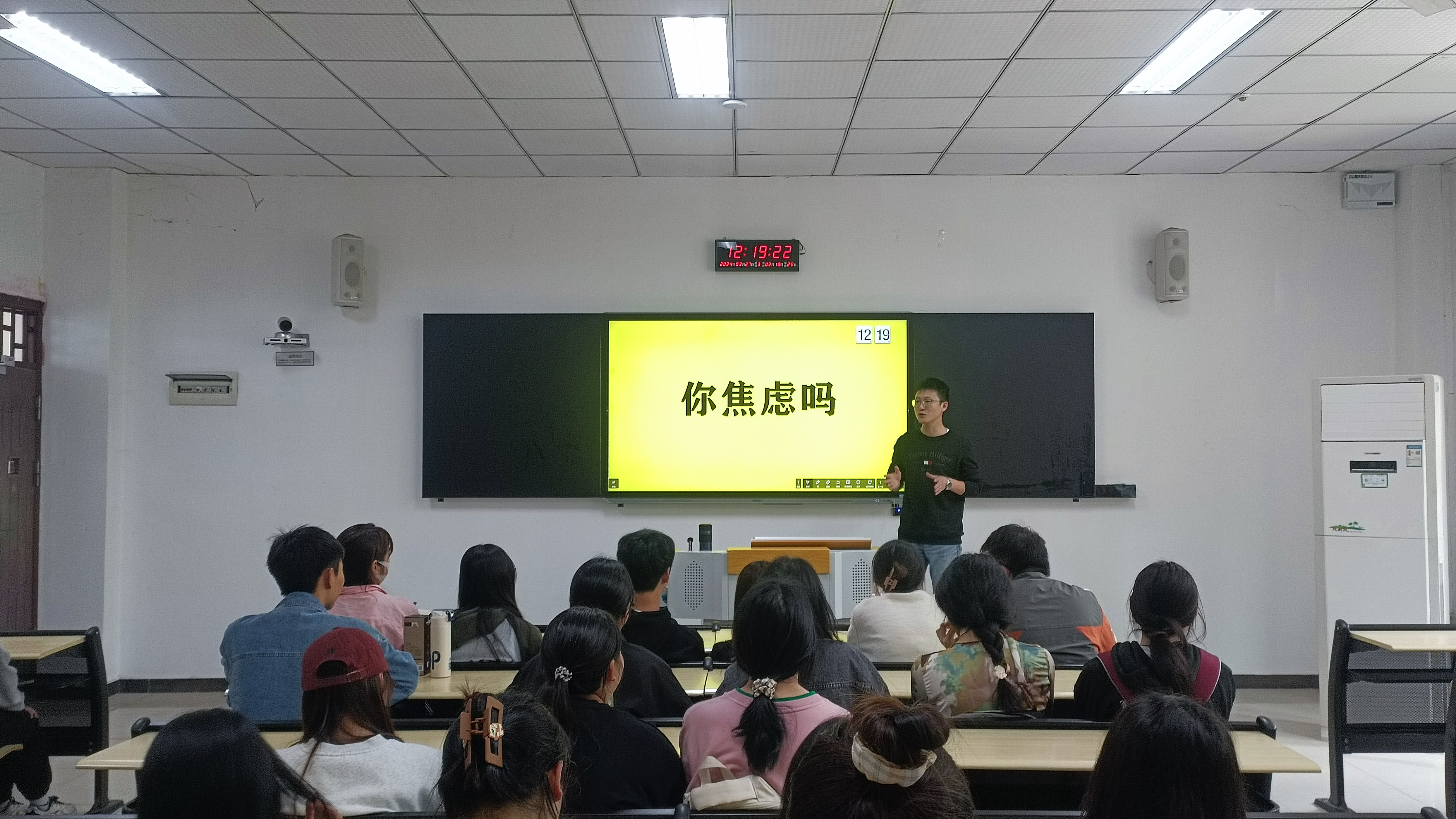 活动的开始,由社团负责人发言并总结上一年的收获与反思,接着是社团指导教师于建辉老师好书分享以及对大二大三同学的一些建议分享和对焦虑一词进行交流和分享从而进一步让大家找到纾解压力和焦虑的办法。最后负责人进行总结此次活动。