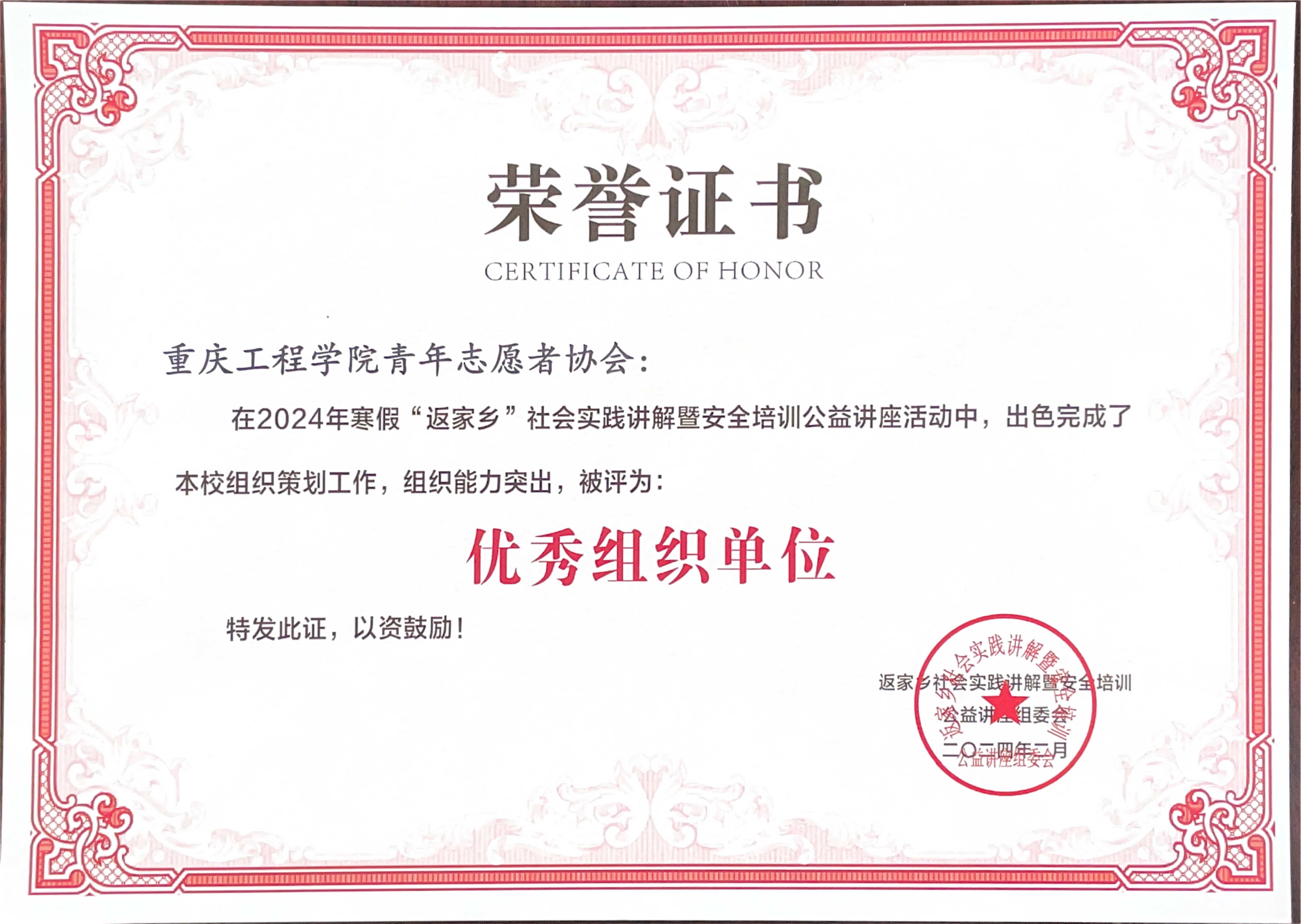 我校荣获2024年全国寒假“返家乡〞社会实践讲解暨安全培训公益讲座活动 “优秀组织单位”