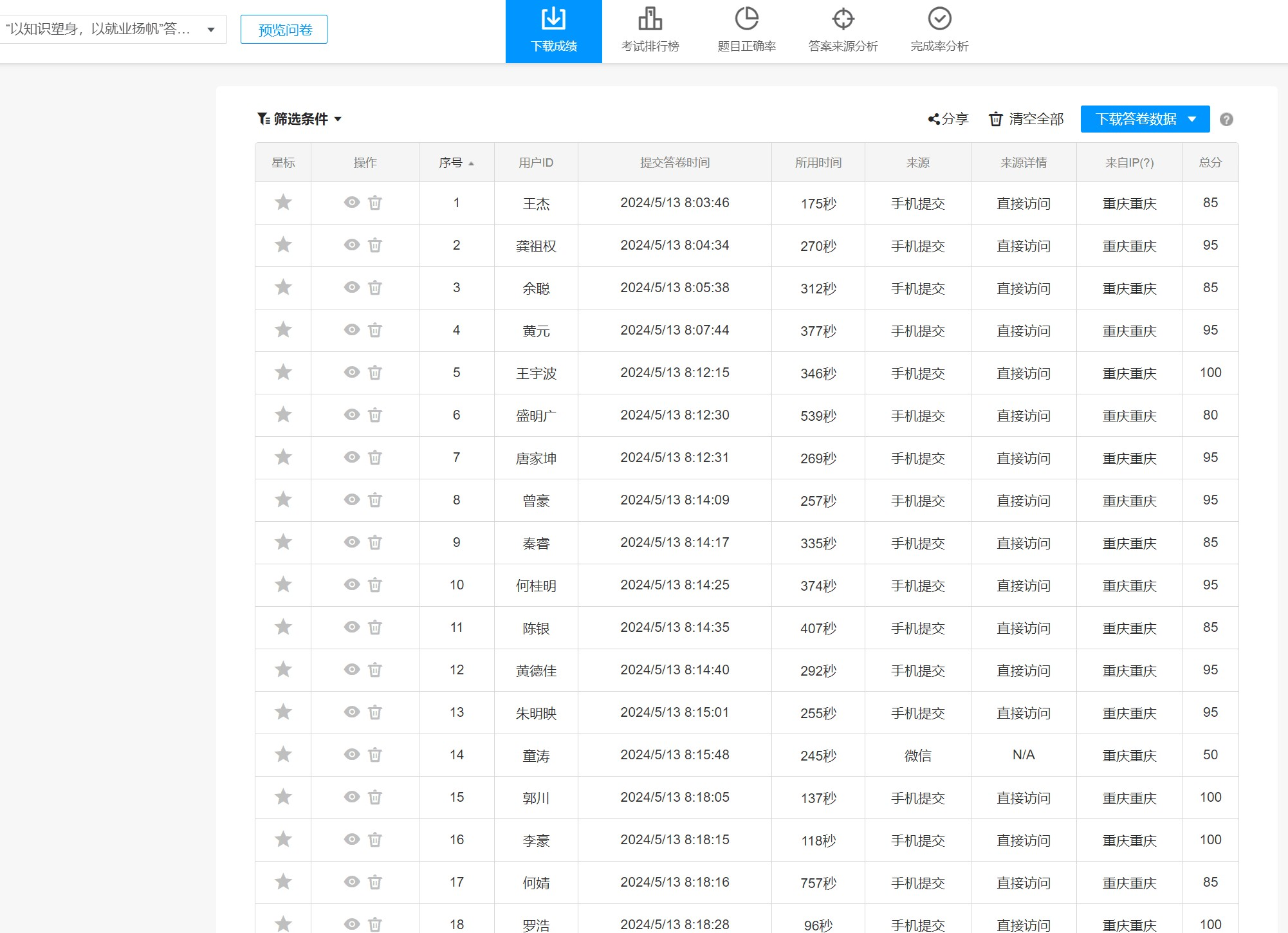 本网讯(文/张光恒 图/冉崇玲) 了解创业就业相关政策法规不仅在于其直接的经济效益和社会影响,更在于其对社会创新、个人发展以及国家竞争力的长远贡献。为满足大学生对就业知识的需求,强化同学们的就业意识,帮助同学们提升就业能力,2024年5月13日8:00——5月14日22:00,电子信息学院与智能制造学院对外联络部决定举行“以知识塑身 以就业扬帆”为主题的大学生就业创业知识竞赛。