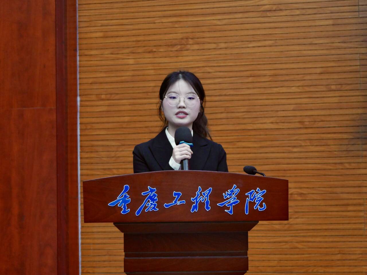 紧接着,2021级团委学生副书记杨丹学姐上台作《追风赶月莫停留》主题发言。她分享了自己在团学工作中的经验和感悟,鼓励新一届团学骨干们要勇于担当,不断学习,为学院的发展贡献青春力量。