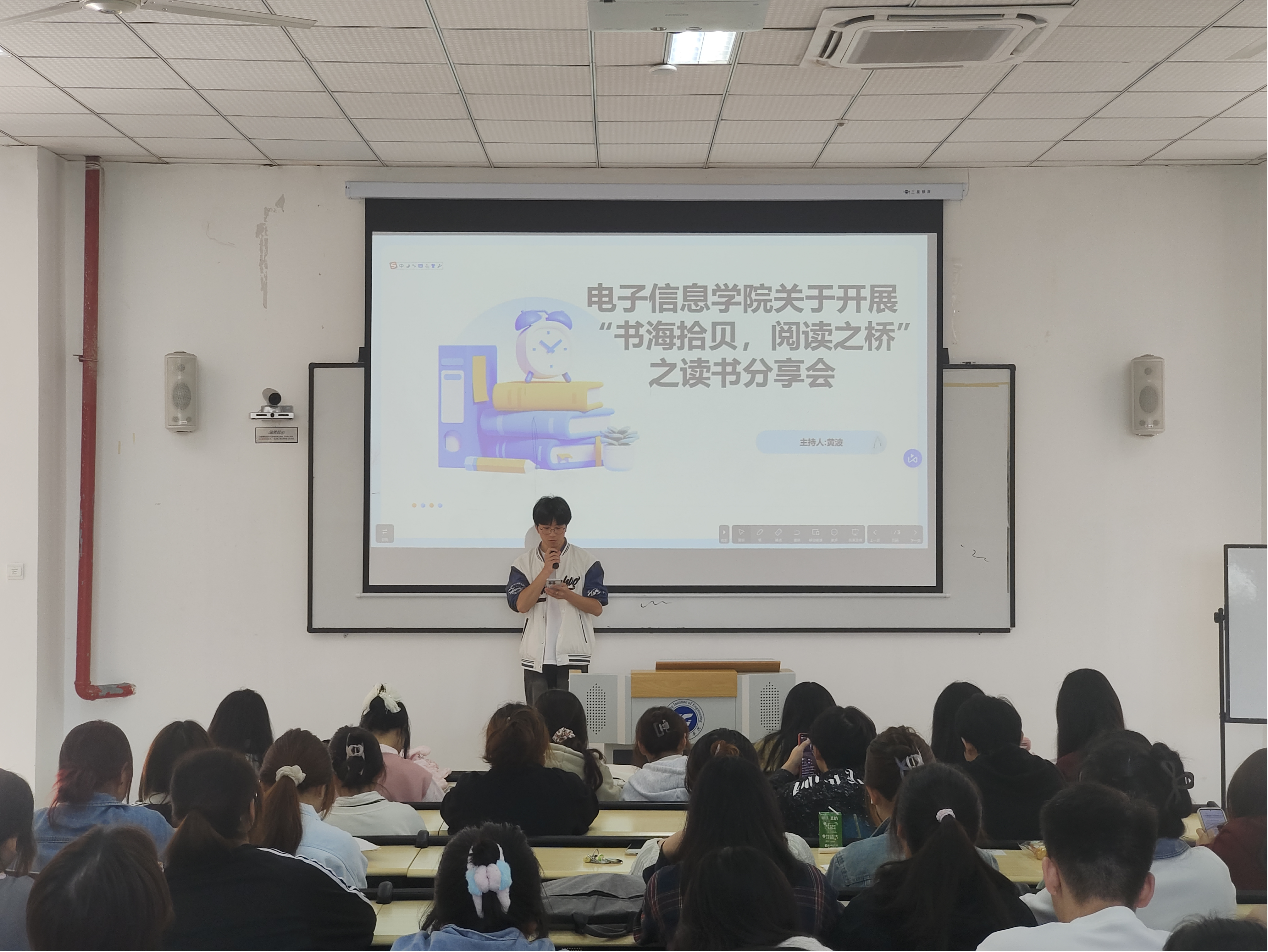 活动由学习部成员黄波主持。活动开始,黄波同学用简短而有力的开场白,为大家勾勒出了本次分享会的主题和宗旨。同学们怀揣着对阅读的热爱,相聚一堂,共同享受这场精神的盛宴。紧接着,冯鑫同学分享了《活着》的故事主要情节。他深情地讲述了自己阅读的感悟,认为这本书不仅让他对人生有了更深刻的理解,还激发了他对未知世界的好奇心。他的分享引发了在场书友的共鸣,大家纷纷表示,阅读确实是一种能够拓宽视野、丰富内心世界的神奇力量。紧接着,谢秋会同学分享了《我与地坛》的读书观后感。她告诉了我们生命的美丽与脆弱,让同学们思考了人生的意义和价值。同时,也让我们看到了史铁生内心的挣扎和成长,也感受到了他对于生命的敬畏和热爱。在热烈的掌声中,“书海拾贝,阅读之桥”读书分享会圆满结束。