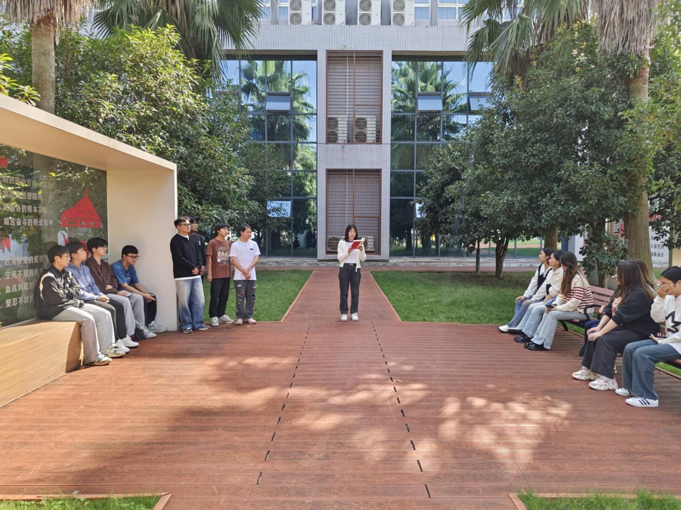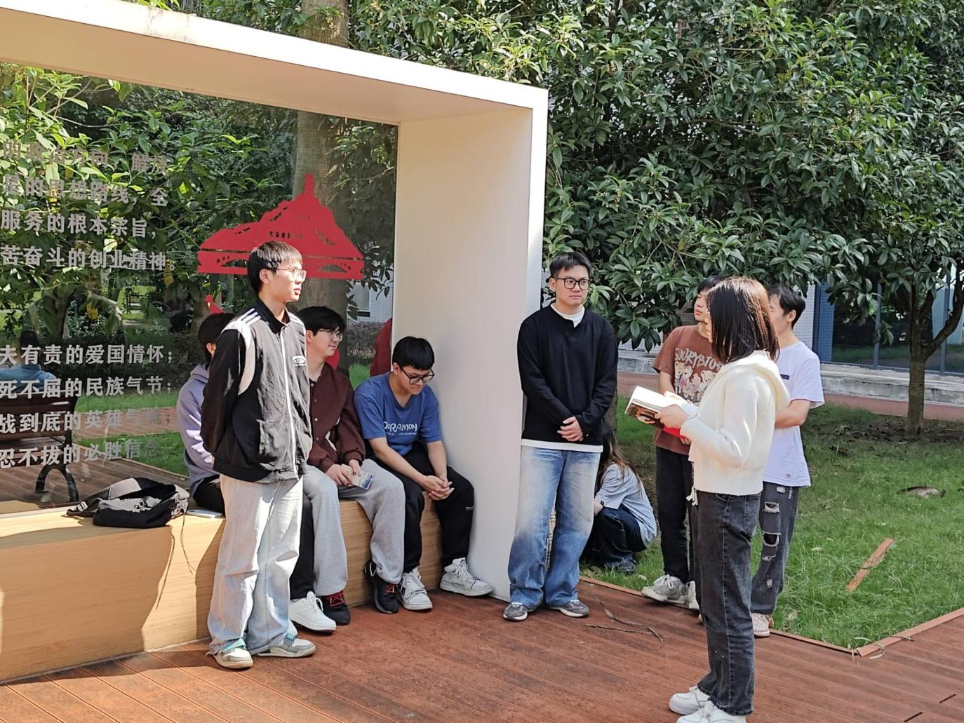 本网讯(文/图 大数据与人工智能学院 彭卿桓 丁祝艳)2024年10月23日14:00,云智志愿服务队“读经典 学理论 强实践”领学团组织28名同学在六教党建广场开展本学期第二期领学活动。