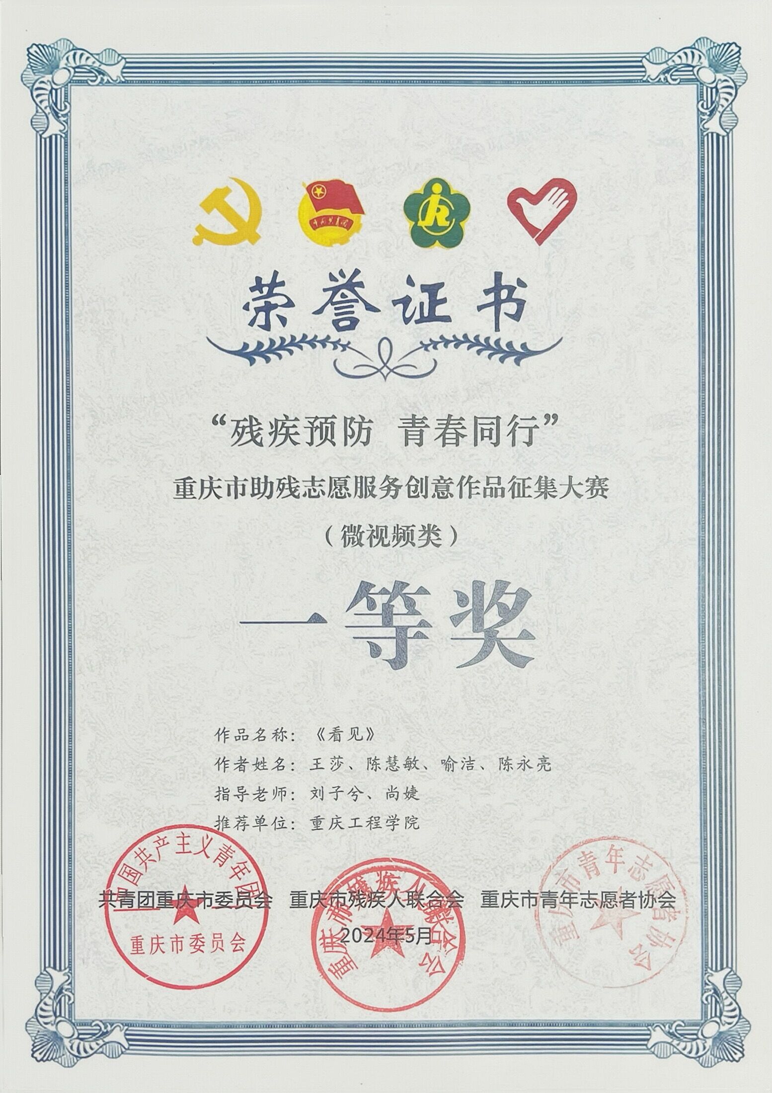 喜报!重工学子荣获“残疾预防,青春同行”重庆市助残志愿服务创意作品征集大赛一等奖