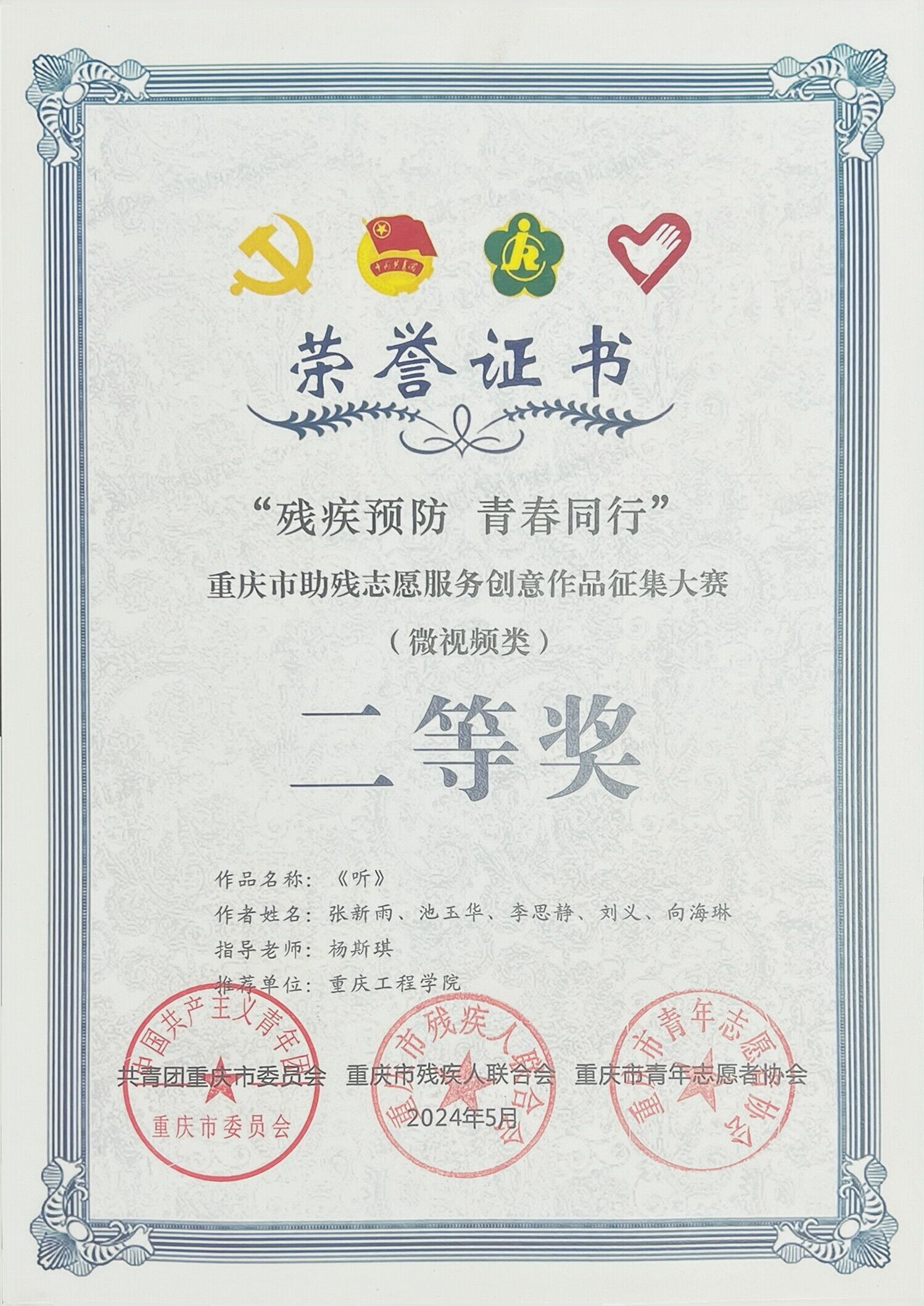 喜报!重工学子荣获“残疾预防,青春同行”重庆市助残志愿服务创意作品征集大赛二等奖