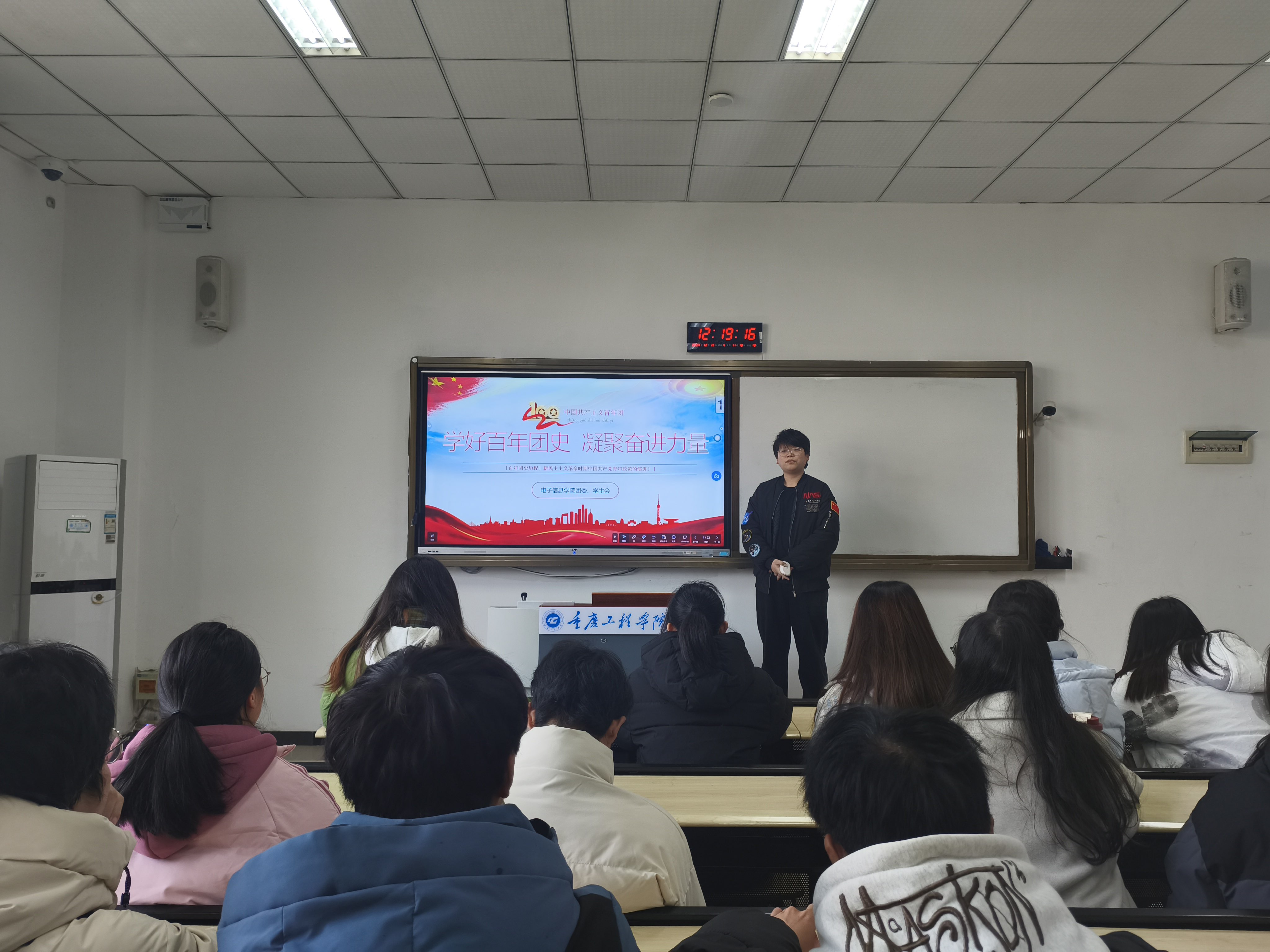 为推进青少年将主动自己的人生奋斗与国家的前途命运结合起来的思想,电子信息学院团委、学生会特开展关于“学好百年团史 凝聚奋进力量”的专题学习会。
