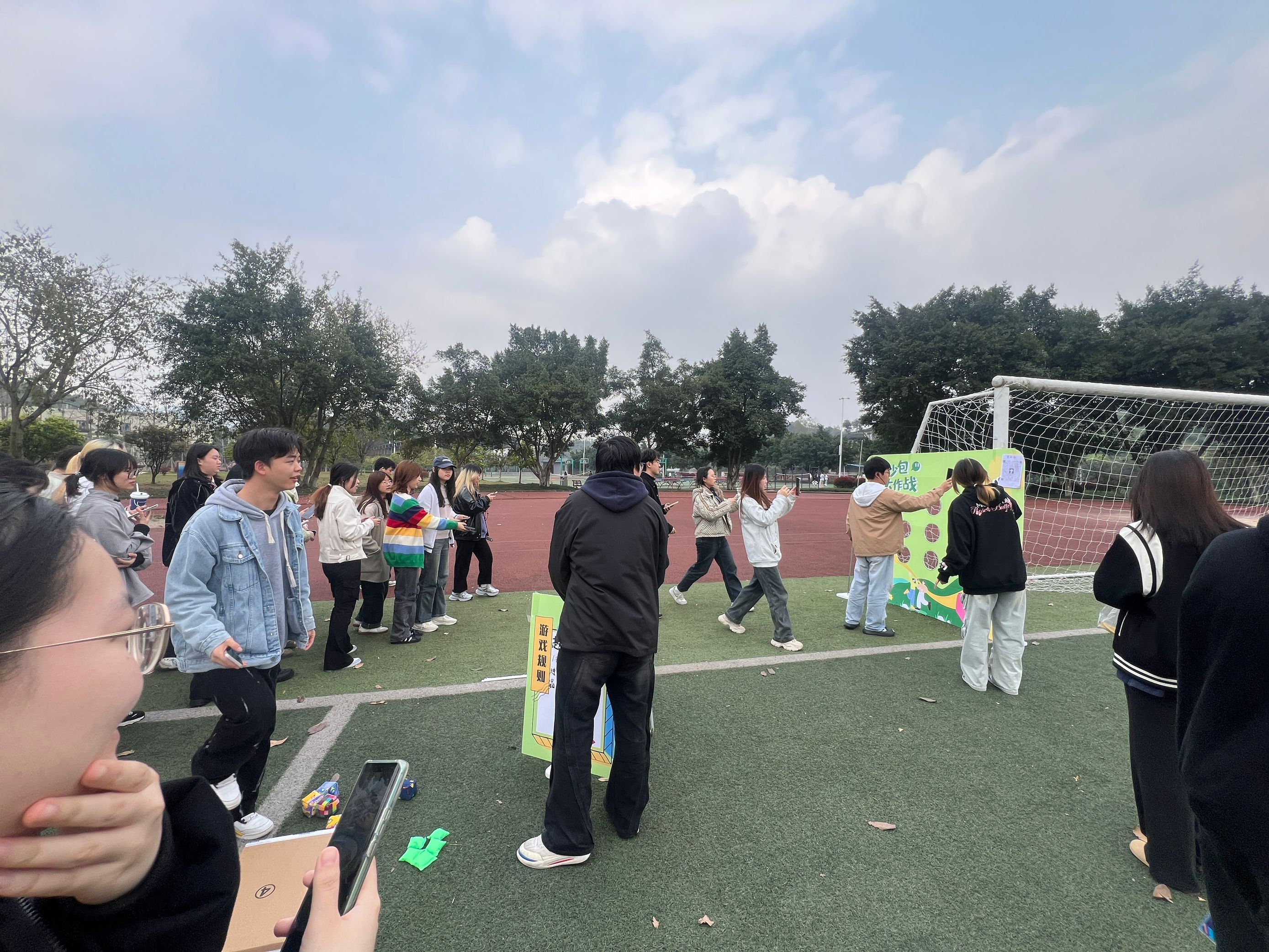 活动伊始,工作人员布置了一个尺寸为1.8m×1.2m的KT模型板作为投掷目标,同学们以小组为单位参与投掷挑战,凭借精准的投掷命中目标区域来累计积分。活动现场气氛热烈非凡,欢呼声此起彼伏。在活动过程中,同学们不仅展示出敏捷的身手,更通过团队协作与互动,传递着活力,共享欢声笑语。前50名成功挑战的同学井然有序地领取了棒棒糖装饰卡和定制小礼品。活动落下帷幕后,同学们们纷纷感慨,通过丢沙包这一简单的游戏,仿佛回到了童年时光,重温了儿时的欢乐记忆。