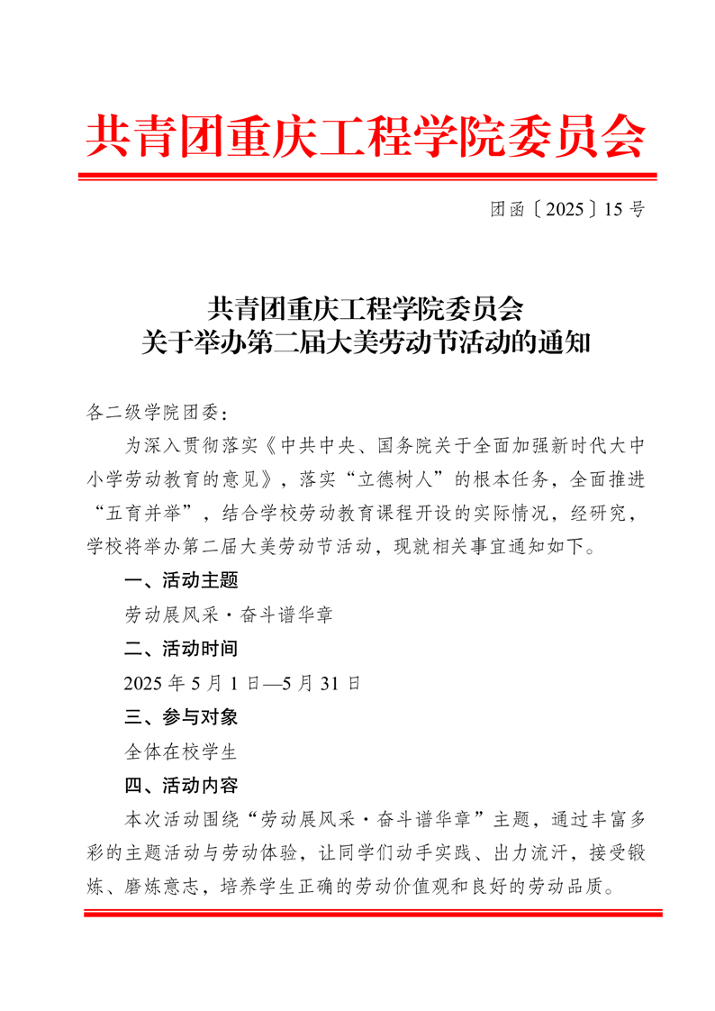 共青团重庆工程学院委员会关于举办第二届大美劳动节活动的通知