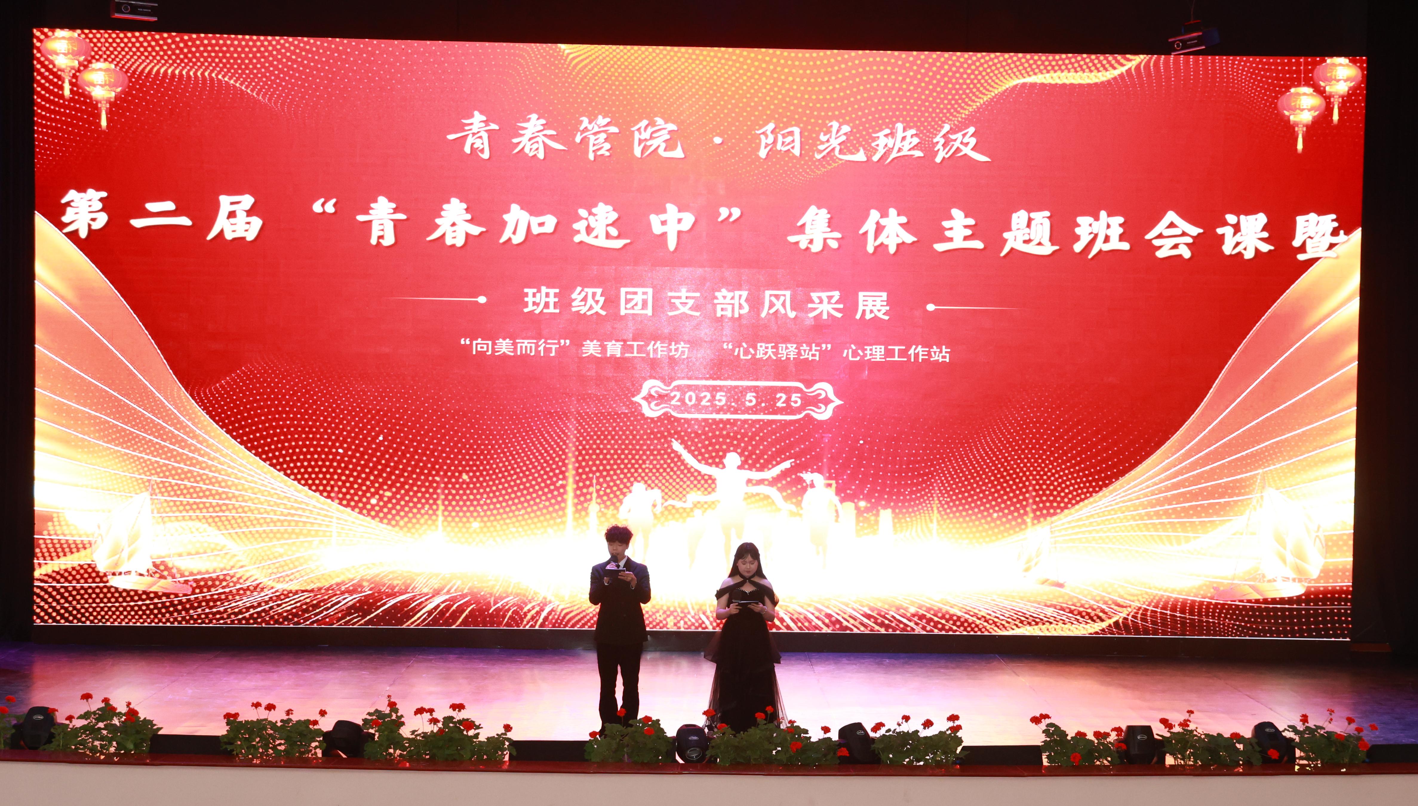 5月25日,管理学院第二届“青春加速中”集体主题班会暨班团风采展在学术报告厅顺利举行。本次活动由辅导员美育工作坊、心理工作站联合承办,辅导员吴文红、罗雪执导,管理学院大二、大三全体班级及辅导员共同参与,以丰富多彩的形式展现了青年学子的青春风采与班级凝聚力。