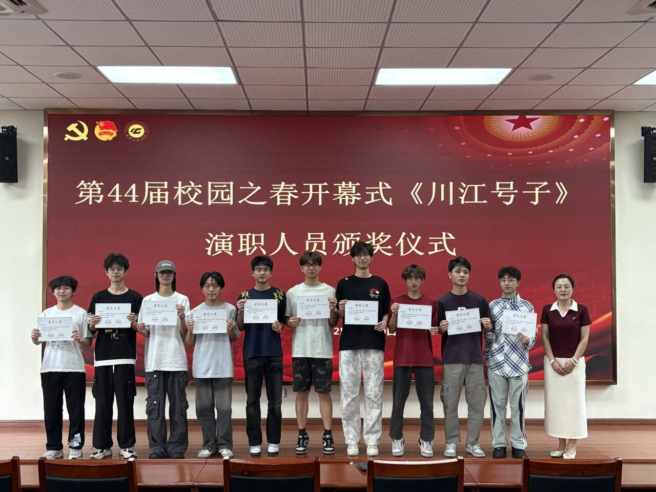 2025年5月30日12:30,我校团委在行政楼举行了第44届校园之春《川江号子》演职人员表彰仪式。党委学生工作部部长黄燕作为颁奖嘉宾出席现场、校团委全体老师及30余名获奖代表参与活动。