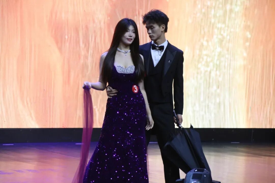 该篇章以高端晚宴为场景,囊括经典、个性等多元风格。深蓝色缎面长裙衬优雅,黑色燕尾服显绅士,还有洛丽塔风、复古风造型轮番登场。同学们轻提裙摆时身姿舒展,转身展示时颔首微笑,举手投足间将高贵气质演绎得鲜活灵动,既显晚宴礼仪格调,更传递青年对多元时尚的探索力。