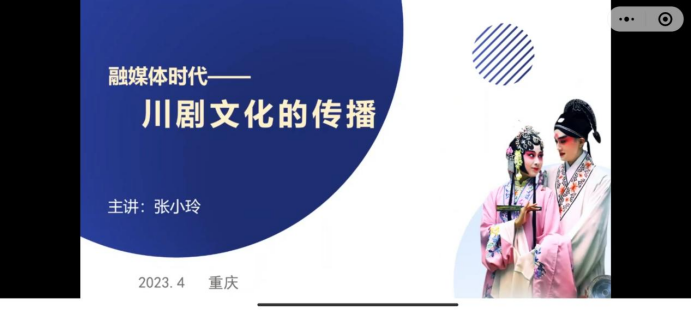 本网讯(文/图 宋夏 吴佩颖)2023年4月7日下午,张小玲教授在小鹅通平台开展了以“优秀传统文化川剧”为主题的知识科普讲座。此次讲座的参与同学达到1.6万人次。