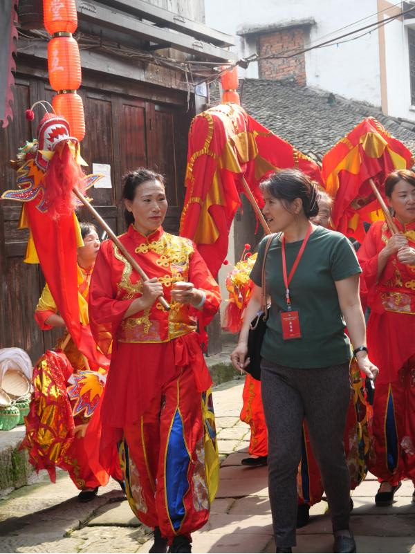演出结束后,游客们便将舞龙老师围的水泄不通,纷纷请教起舞龙的相关动作,并邀请讲解姜家舞龙相关的历史与传承,“舞龙”文化便在一片欢声笑语之中得到了传递。