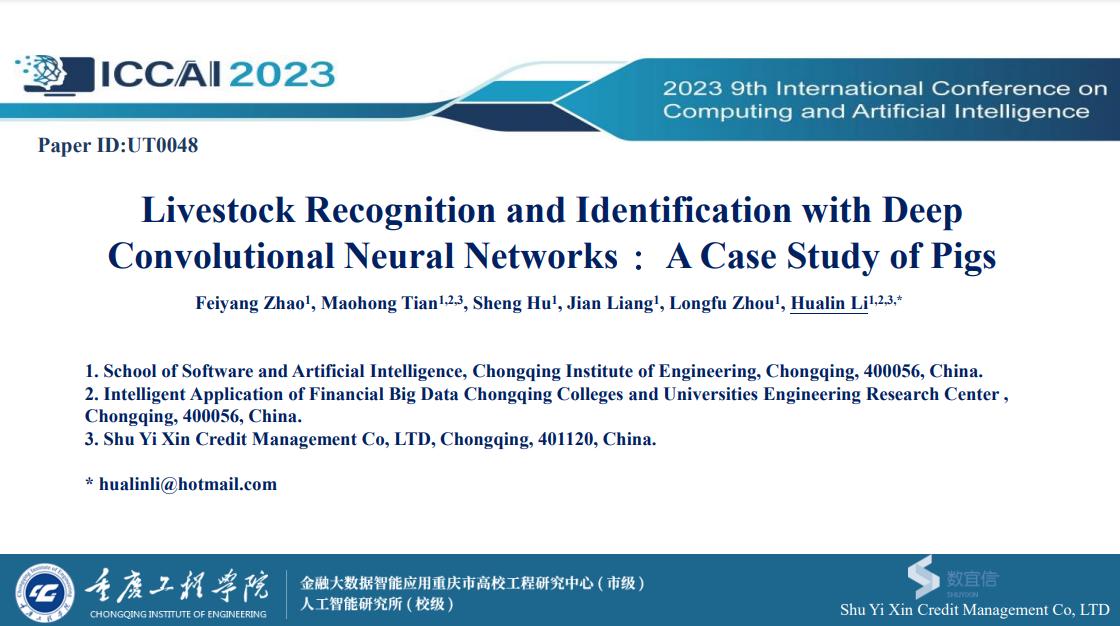 我校软件与人工智能学院人工智能研究所所长、重庆数宜信信用管理有限公司风控中心总经理李华林博士受邀审稿并参会,同时于3月18日就其团队的研究成果作了题为“基于深度卷积神经网络的牲畜识别——以猪为例”的学术报告,得到了与会专家的高度认可和肯定。