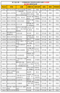 我院师生已连续参加该项大赛两届,获奖成果丰硕。在本届大赛中,我院师生再佳绩:获重庆赛区奖项33项,其中学生组一等奖2项,学生组二等奖9项,学生组三等奖15项,教师组一等奖3项,教师组二等奖2项,教师组三等奖2项。近年来,我院积极推进学科专业一体化建设,探索文化传承创新与专业融合特色发展之路,以赛促学,以赛促教,致力提升学生的数字艺术设计创新实践能力和专业人才培养质量。