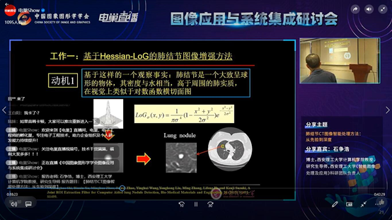 会议现场,西安理工大学《智能图像处理及应用》科研团队负责人石争浩博士,做《肺结节CT图像智能处理方法:从先验到深度》的特约报告。石博士主要针对医学CT图像的处理方法研究现状及未来发展进行探讨,重点汇报应用深度卷积迁移技术进行CT肺结节图像分类的工作;中国图象图形学学会图像应用与系统集成专业委员会委员、火箭军工程大学教授杨小冈,做《图像技术装备应用探析》特约报告;航天五院西安分院信息处理技术研究室副主任肖化超,做《遥感卫星在轨智能处理技术发展与展望》特约报告。主要介绍了航天五院西安分院在遥感图像在轨预处理、目标检测处理、融合处理等方面开展的相关工作;西北农林科技大学教授宁纪锋做《小样本目标跟踪和大规模UAV热红外遥感影像拼接》特约报告。主要介绍了他们团队在大规模热红外遥感影像拼接上的重要进展;山东科技大学电信学院教授范迪做《图像去雾算法研究与应用》特约报告,主要介绍了范教授团队在图像去雾方面的工作以及在港口监控视频影像中的应用情况。