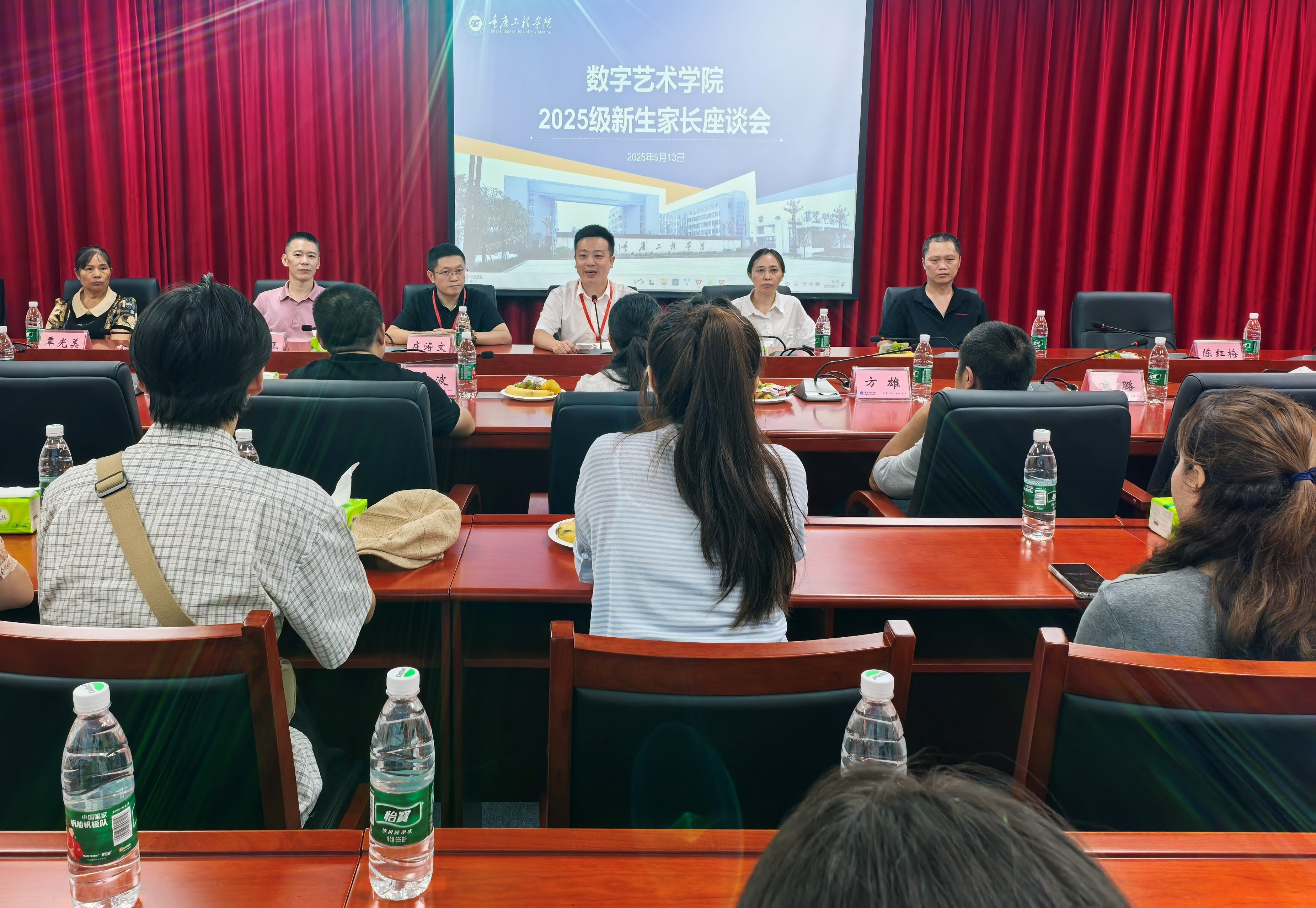 9月13日下午,数字艺术学院于双桥校区第四会议室成功举办2025级新生家校座谈会。数字艺术学院院长庄涛文、学院党总支书记孙建出席会议,与2025级新生及家长代表就学生培养、专业发展及家校协作等方面进行深入交流。会议由孙建主持。