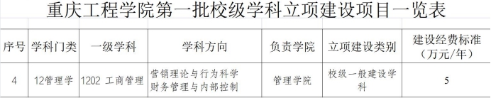 近日,管理学院工商管理学科获重庆工程学院校级一般学科建设立项,工商管理学科由