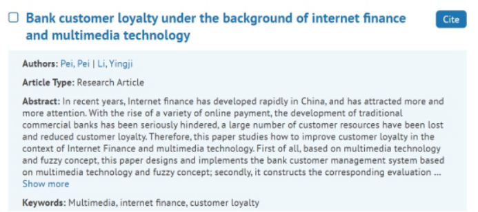 Pei, Pei and Li, Yingji. ‘Bank Customer Loyalty Under the Background of Internet Finance and Multimedia Technology’. 1 Jan. 2021 : 5807 – 5817.