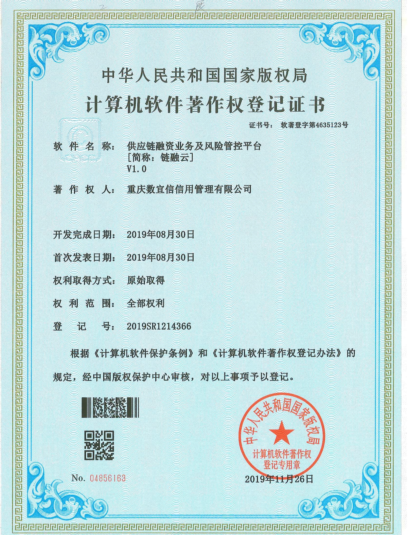 软件名称:供应链融资业务及风险管控平台【简称:链融云】V1.0