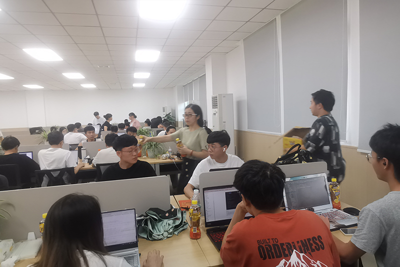 李华平院长一行人来到软件工程研究所,向全体留校实训学生亲手送去解暑饮料,以“一对一”交流的方式,了解学生在实训中存在的问题,并积极给予解决对策,并且对学生取得的成绩给以高度赞扬,希望学生能在暑期实训中百尺竿头更进一步。同时,李华平院长叮嘱学生在暑期要严守管理制度,做好疫情防御工作,在专业技能的提升下能有一个强健的体魄。