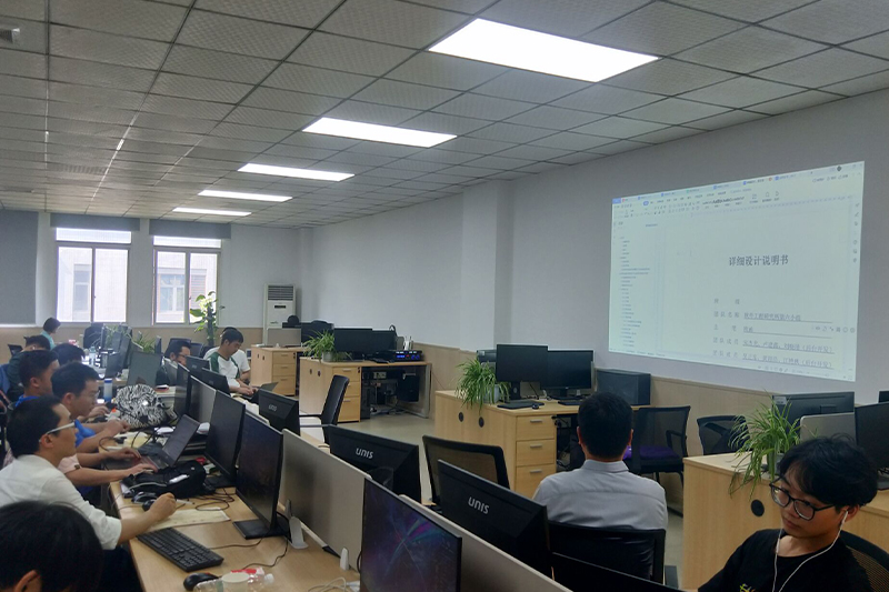 (图/文 软件工程研究所 张幸)为检验学生项目完成质量, 5月7日中午,软件工程研究所在第三教学楼212开展了详细设计及测试用例评审会。本次评审会由班导师张峻铭主持,研究所所长唐浩坤,公司新入职的专职研究人员万江霞、熊磊及王智贤三位老师及研究所全体同学参加。