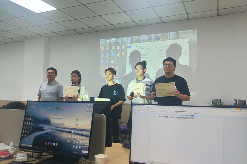 会上,所长唐浩坤为优秀学员颁发《优秀学员》证书,鼓励获奖同学再接再厉,在接下来的项目中收获更多经验与成果。同时也勉励未获奖同学向榜样学习,借助研究所以研促培,实训教育模式的难得机遇,及时发现与弥补自身知识体系的短板与不足,努力提升个人专业技能与大四就业的核心竞争力,顺利完成项目实训的各阶段任务。